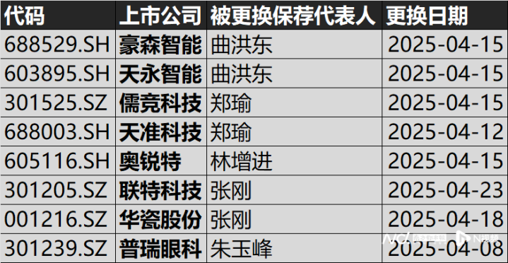 8家由原海通证券保荐的上市公司,更换保荐代表人